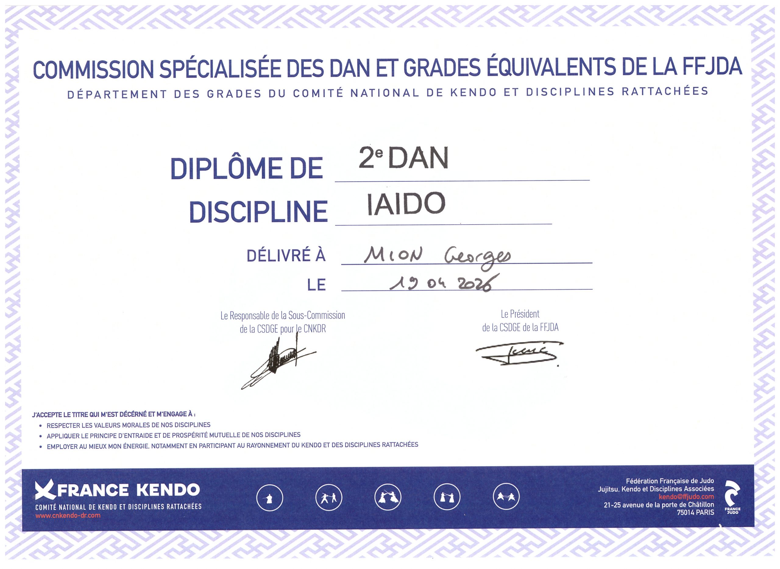 Passionné du Japon, où il s’est rendu à plusieurs reprises, Georges Mion étudie sa langue (difficile) et aime pratiquer ses arts martiaux ; formé à Bordeaux par maitre Daniel André Brun au début des années 80, il est ceinture noire d’aïkido qu’il a enseigné pendant trois ans à Djibouti (titulaire du brevet fédéral de l’Union des Fédérations d’Aïkido) et 2ème dan de iaido. Il a par ailleurs un brevet de parachutisme (1989) et un permis de conduire les motos grosses cylindrées. Il a des compétences informatiques en programmation (VBA), statistiques (StatEL) et graphisme (Photoshop, Bryce, Structure Synth, Avogadro). Il est également entomologiste, photographe et peintre à ses heures.