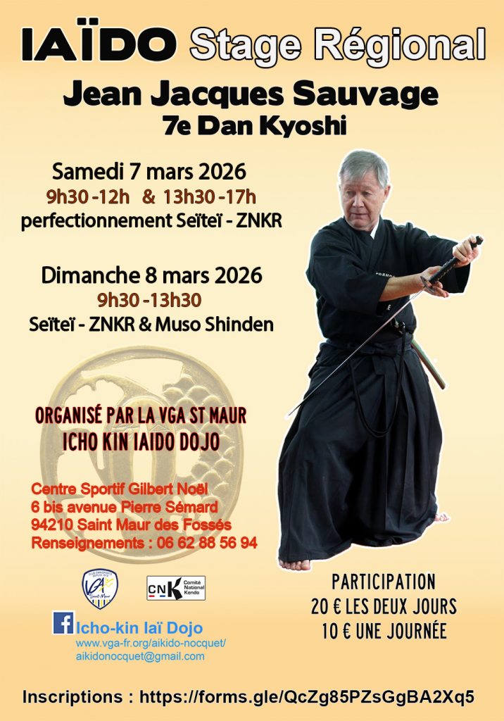 7 et 8 Mars 2026 Jean Jacques SAUVAGE (7ème dan Kyoshi)
